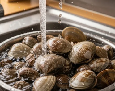 소금물에 식초를 소량 추가하면 바지락이 빠르게 입을 벌려 15~30분 내에도 가능합니다.