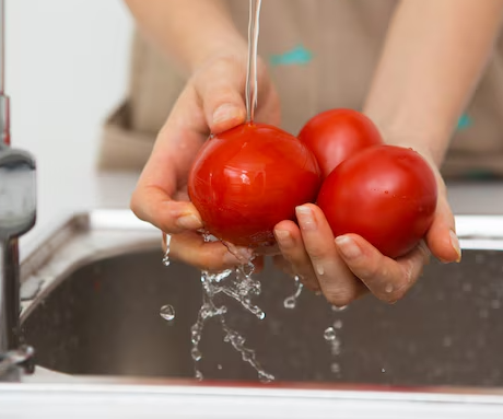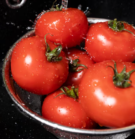 토마토는 섭취 전에 깨끗하게 세척하는 것이 중요합니다. 먼저 꼭지를 제거한 뒤 흐르는 물에 30초 이상 부드럽게 문질러 씻어줍니다. 이후 식초를 희석한 물에 몇 분간 담갔다가 다시 헹구면 잔류 물질을 제거하는 데 도움이 됩니다.